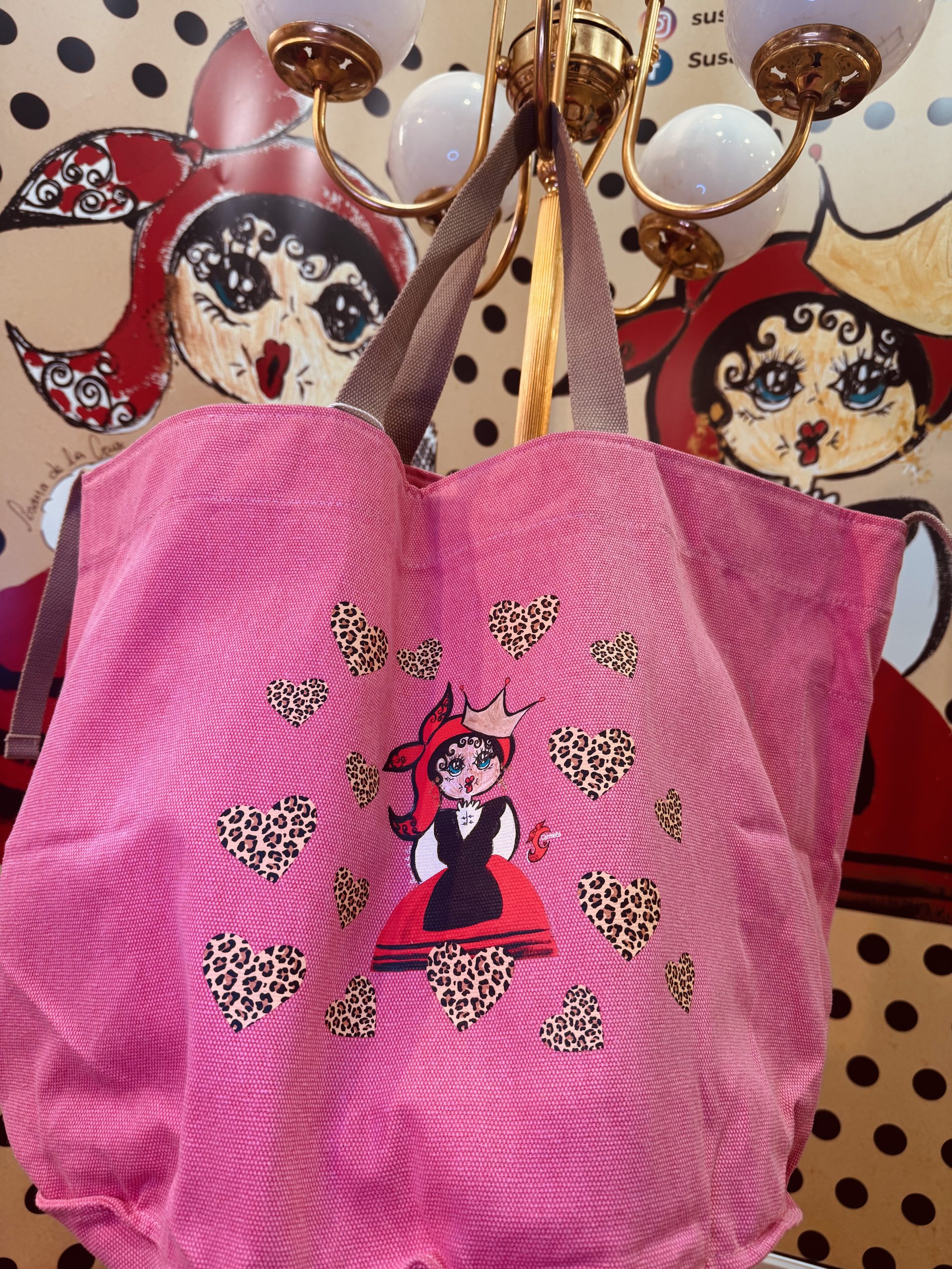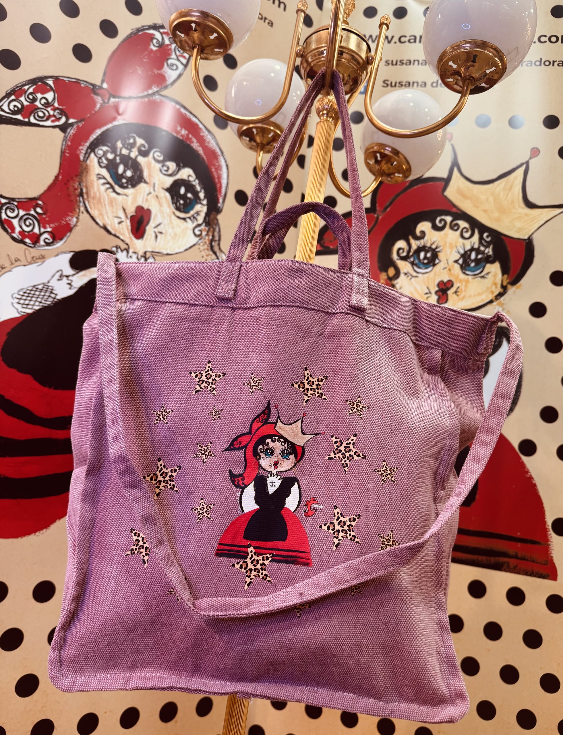 Bolsa Tote Color Rosa lavado con estrellas animal print.